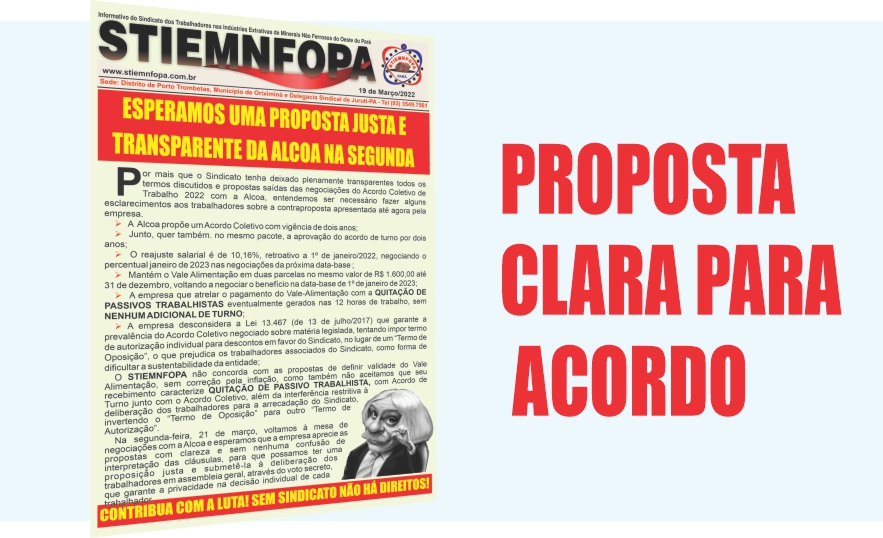 Negociações ACTESPERAMOS UMA PROPOSTA JUSTA E TRANSPARENTE DA ALCOA NA SEGUNDA-FEIRA Leia mais...